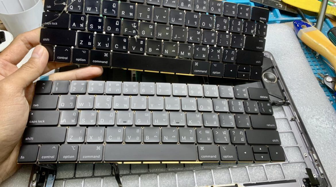 Macbook Pro 13” หรือ 15” และ Air รุ่นใหม่ ๆ ก็มีบริการเปลี่ยนคีย์บอร์ดยกทั้งแผงแบบนี้นะครับ ในกรณีเครื่อง ใช้งานคีย์บอร์ดไม่ได้บางปุ่ม คีย์บอร์ดโดนน้ำ วิธีนี้ช่วยระหยัดค่าใช้จ่ายไปได้เยอะ โดยเราไม่ต้องเปลี่ยนยกทั้ง Top case งานเปลี่ยนคีย์บอร์ดแบบนี้ ทางเราขอเวลา 1 วัน รับรองงานสวย ๆ พร้อมกับทำความสะอาดเครื่องไปในตัว กลับไปใหม่พร้อมใช้งานเหมือนเดิม
