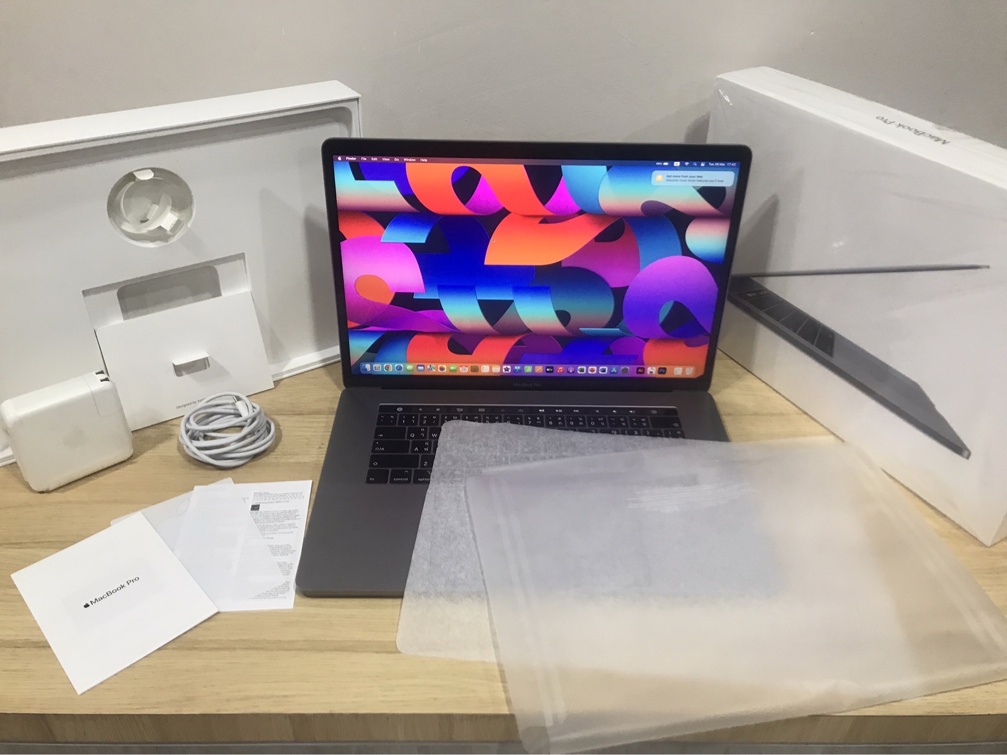 Macbook Pro 15-inch,2018 Processor 2.6 GHz 6-Core Intel Core i7 Memory 16 GB 2400 MHZ DDR4 Storage 512 GB Flash Storage Accessories ตัวเครื่อง สายไฟ Filmกันรอยหน้าจอ